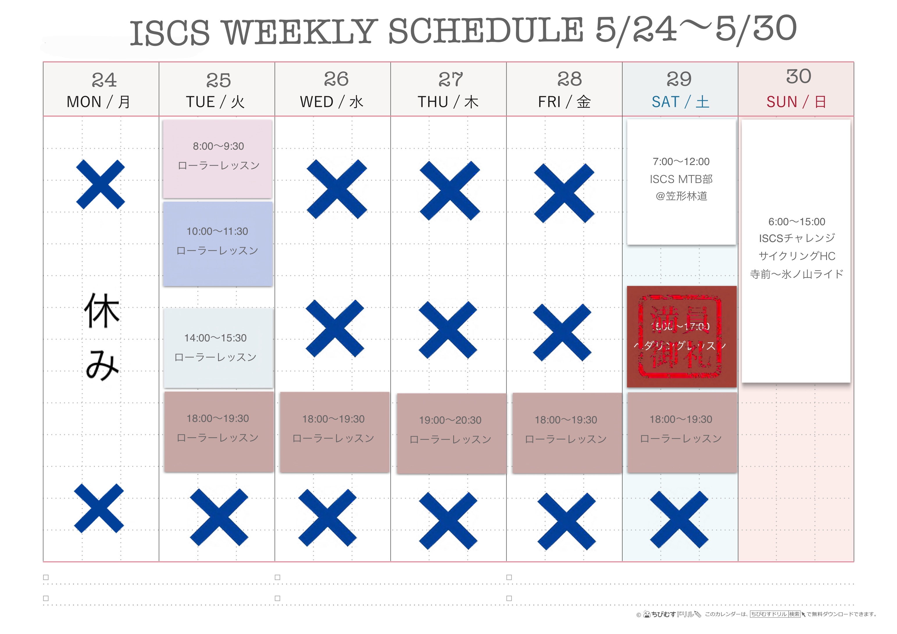 週間スケジュール5/24~5/30