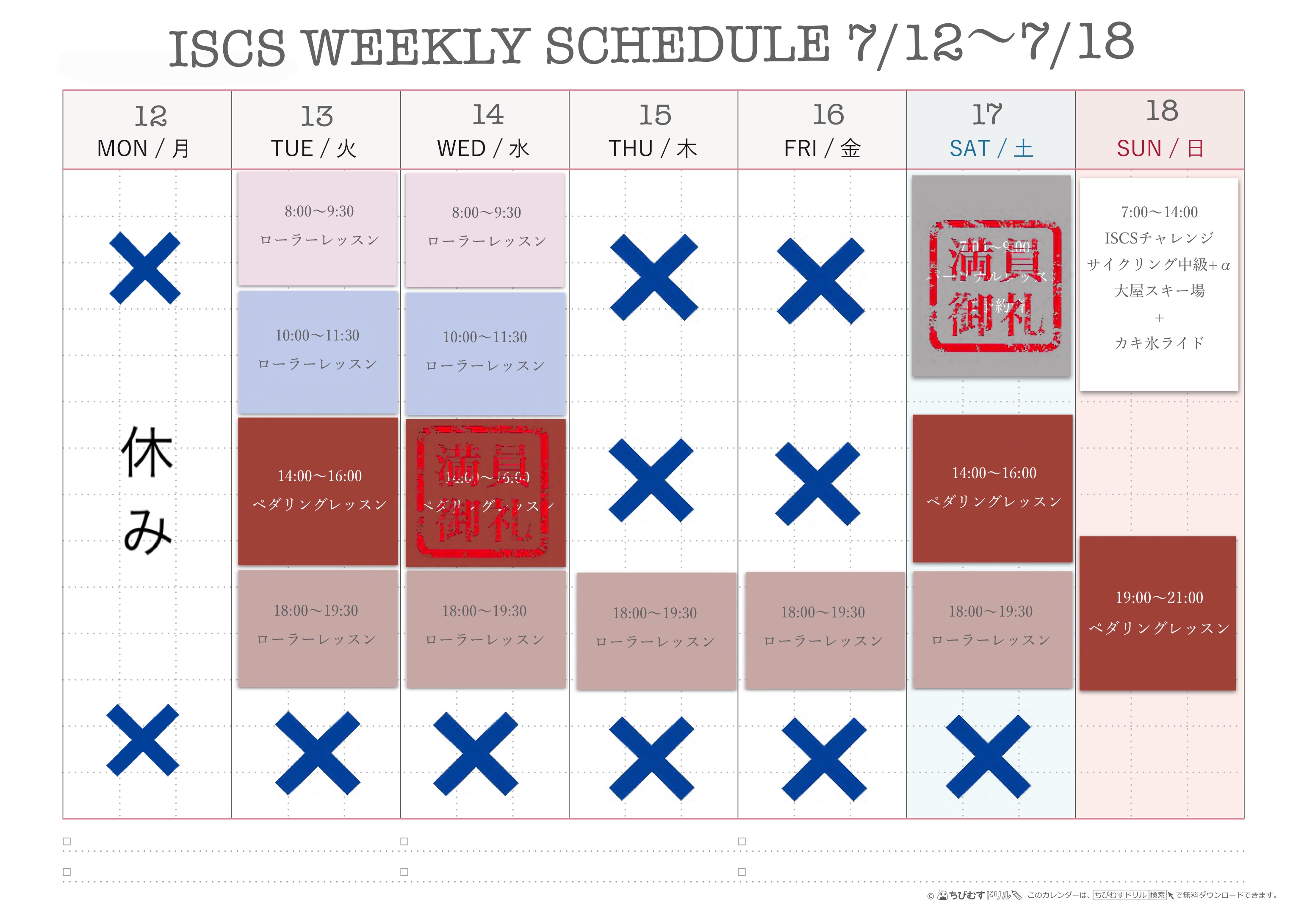 週間スケジュール7/12~7/18今週もどうぞよろしくお願い致します!