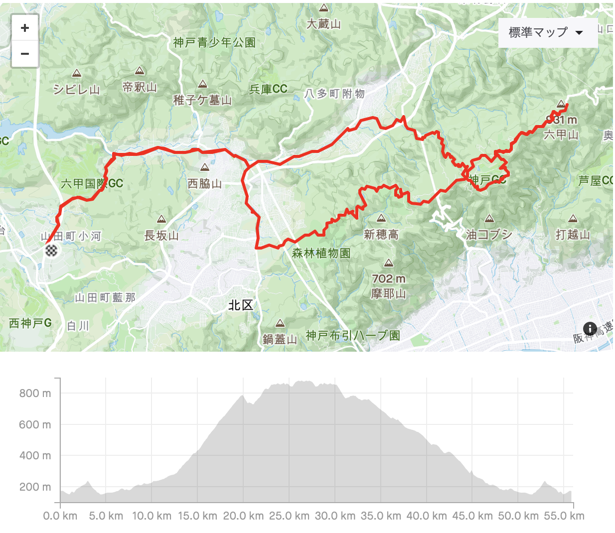距離56km 獲得標高1250m